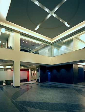 • Poured concrete superstructure with energy efficient, low-E, semi-reflective, blue tint curtain-wall glazing